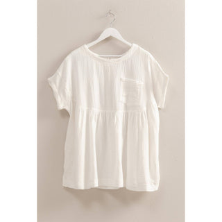 Double Gauze Short Sleeve Tunic Top in White