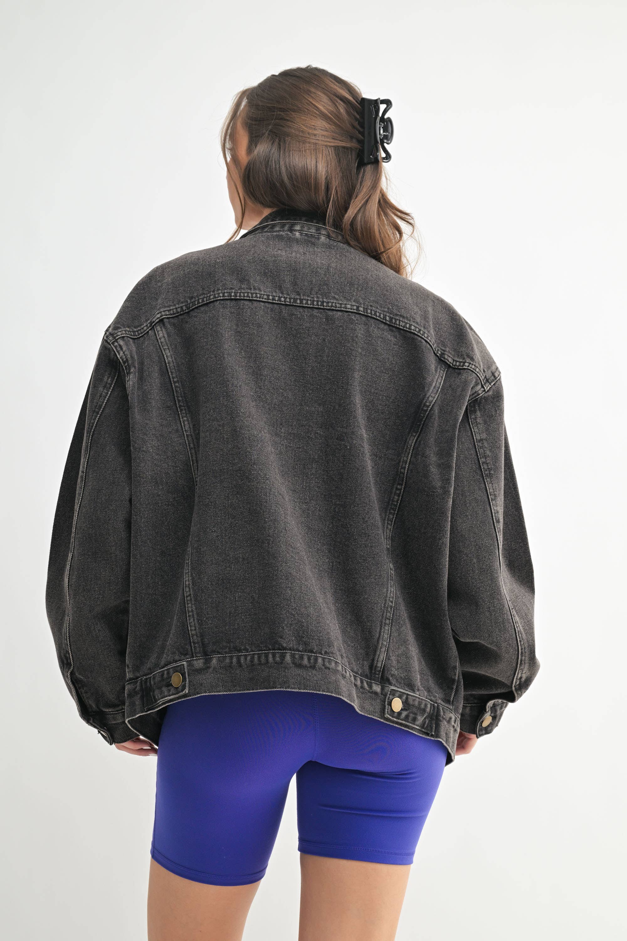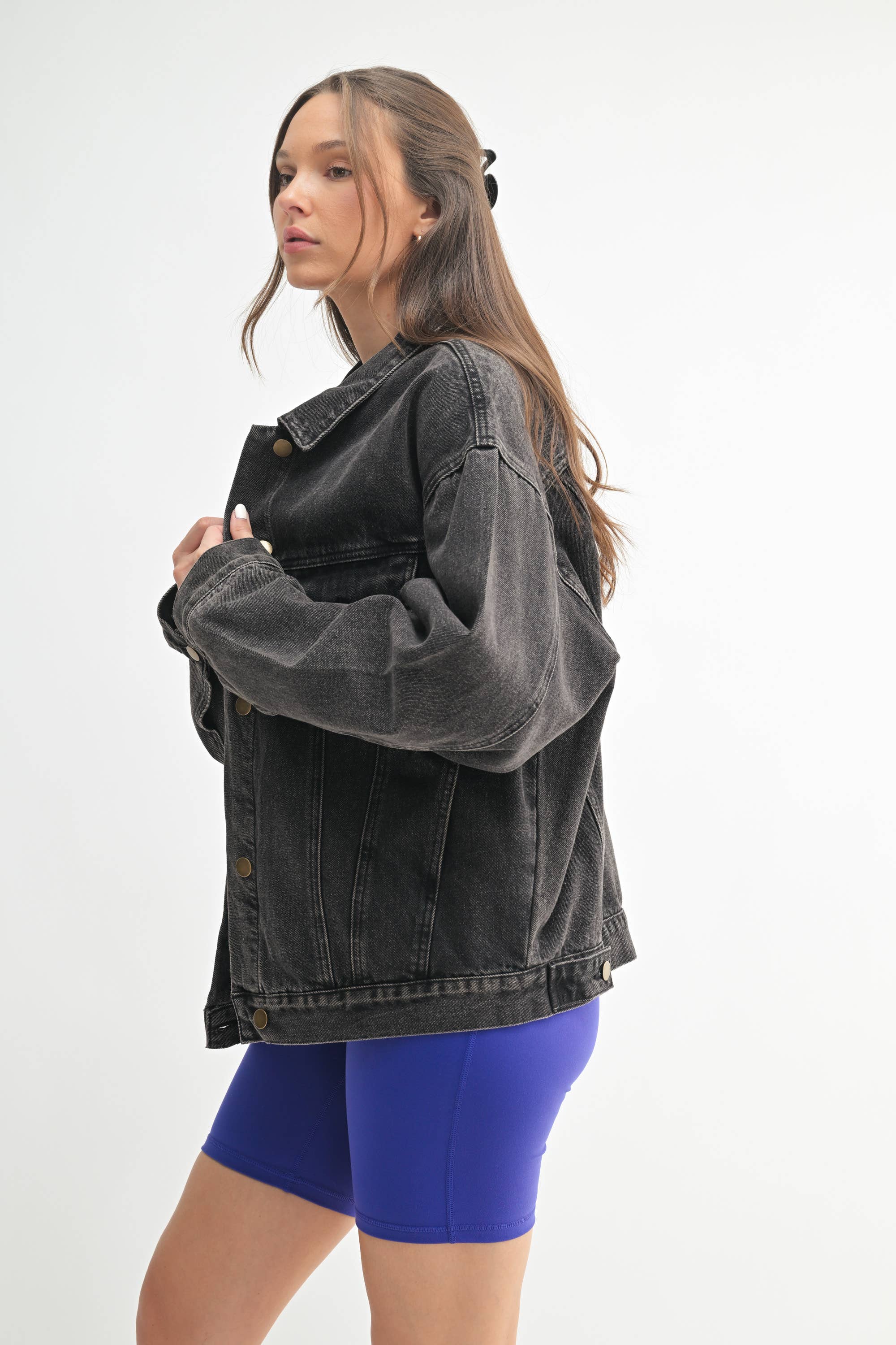 The boxy silhouette of this denim jacket gives off relaxed vibes - perfect to layer over your Mono B activewear for a casual outing. It features two breast pockets, two side pockets, and metal buttons.