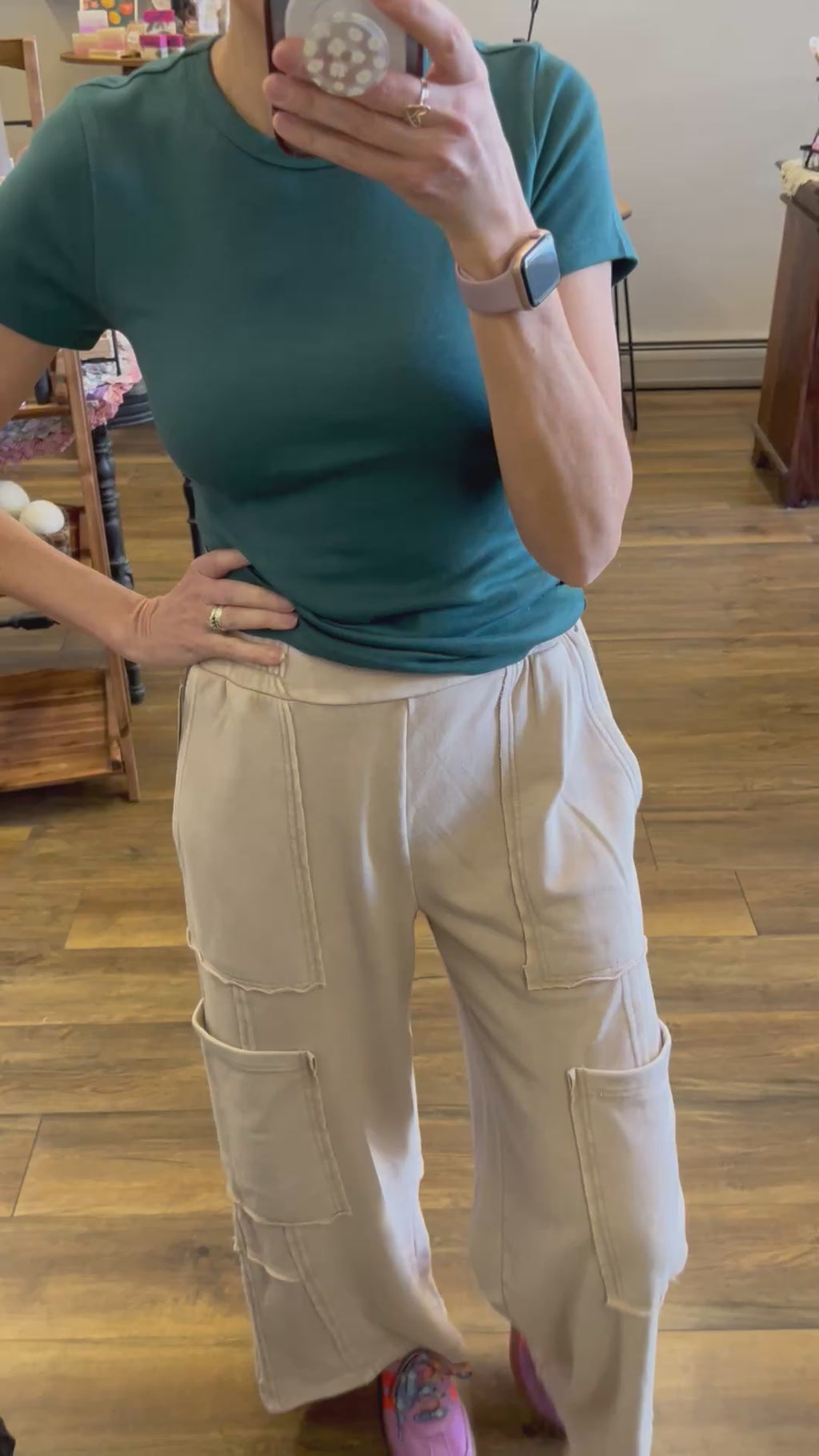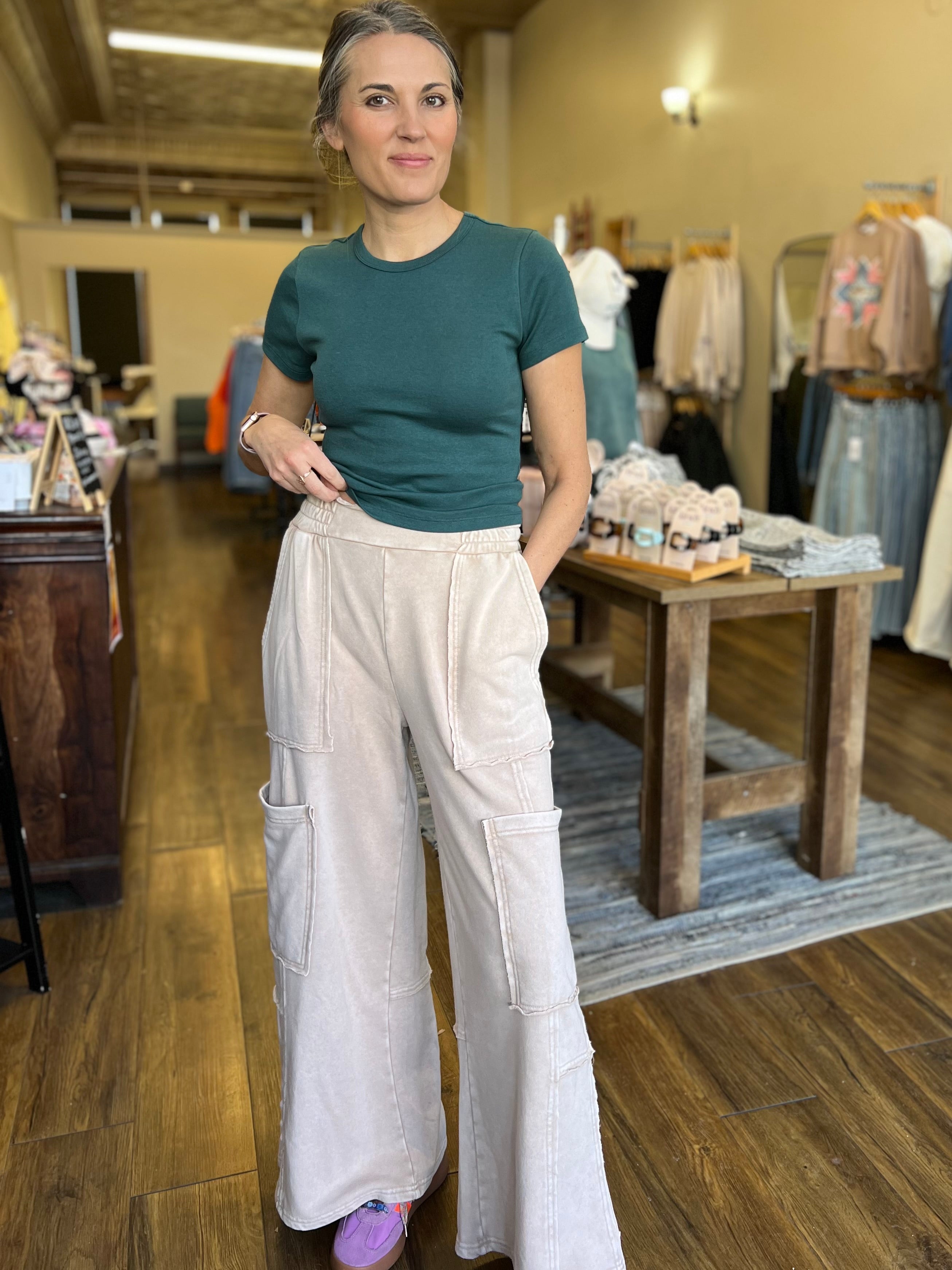 Crafted from soft fabric, these trend-forward cargo pants feature a high-rise elasticated waistband with a raw edge finish, multiple raw-edge patch pockets, and a dramatic wide-leg silhouette that drapes to the floor. Pair with a fitted crop top and platform sandals for an effortlessly chic and stylish ensemble.