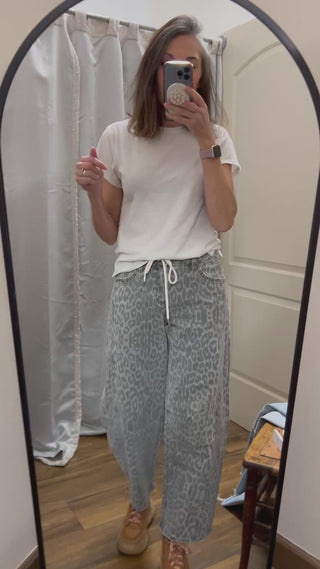 We The Free Good Luck Printed Barrel Jeans in Watercolor Wreath