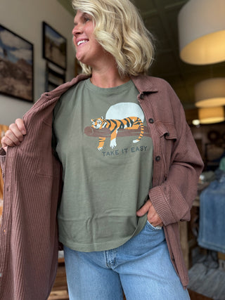 Women's Life Is Good Take It Easy Tiger Short Sleeve Boxy Crusher Tee