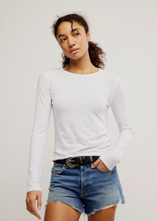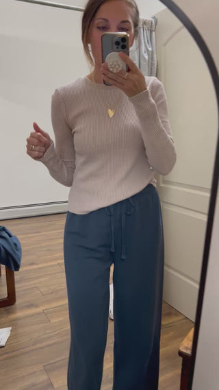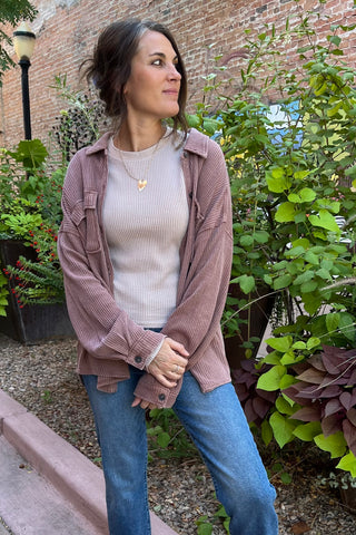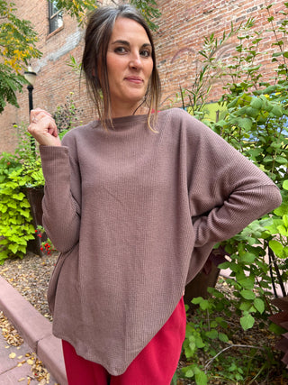 Light Taupe Mineral Wash Waffle Knit Long Sleeve Top