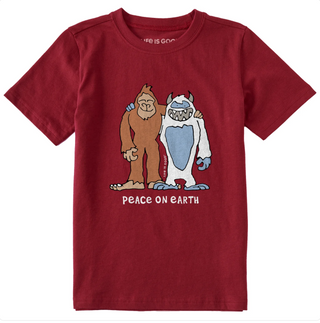Kids Life Is Good Bigfoot & Yeti Peace on Earth Short Sleeve Crusher Tee