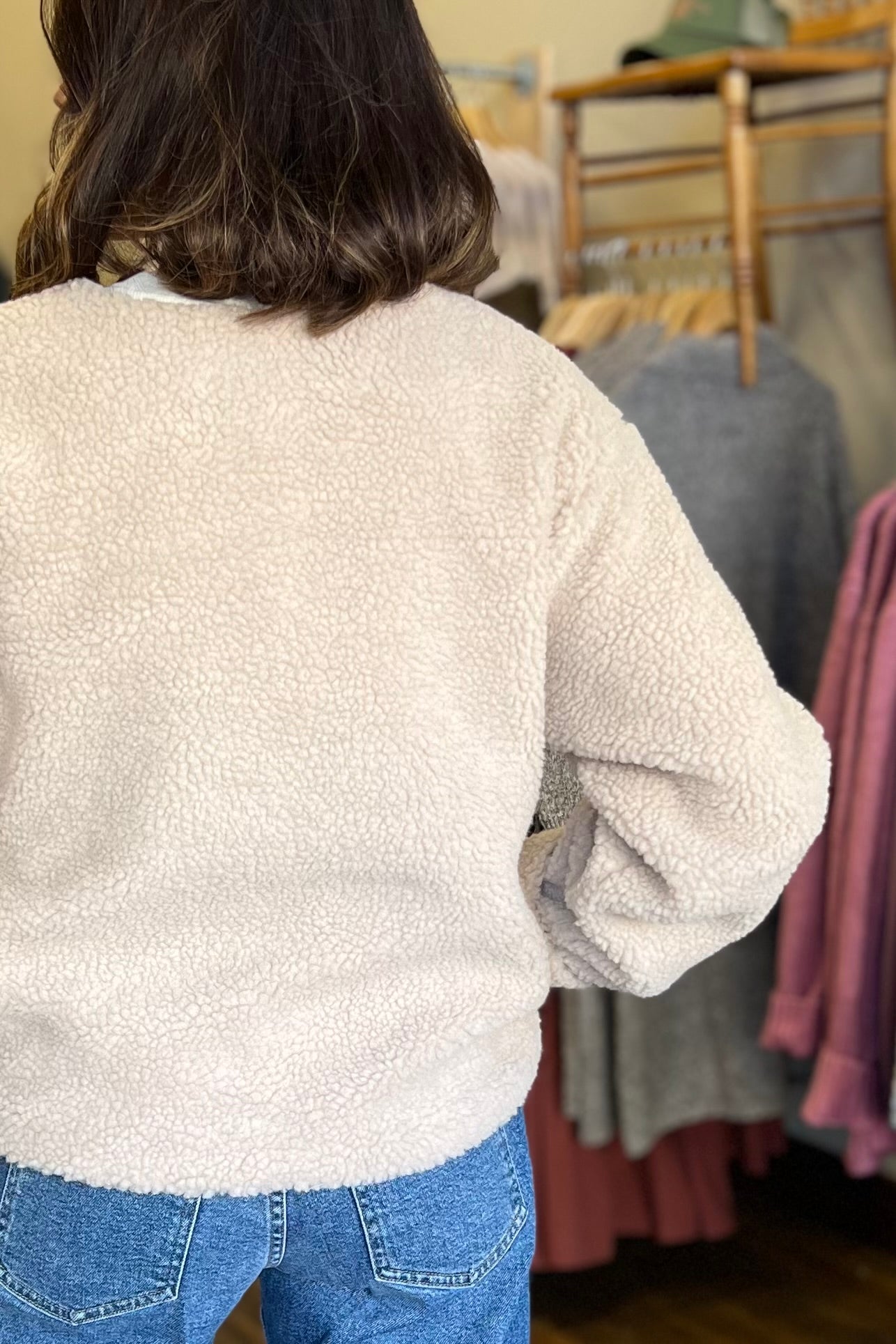 Wrap yourself in cozy comfort with our Oatmeal Sherpa Button Jacket—the perfect layer for those moments when you want to feel like you're hugging a cloud. Featuring a soft sherpa lining that's incredibly plush and warm, this jacket combines style with serious snuggle factor. The classic button-front design makes it easy to adjust your warmth level, while the neutral oatmeal tone pairs effortlessly with everything in your closet. Whether you're heading out for a casual adventure or just lounging at home, this jacket delivers the kind of comfort that makes you never want to take it off.