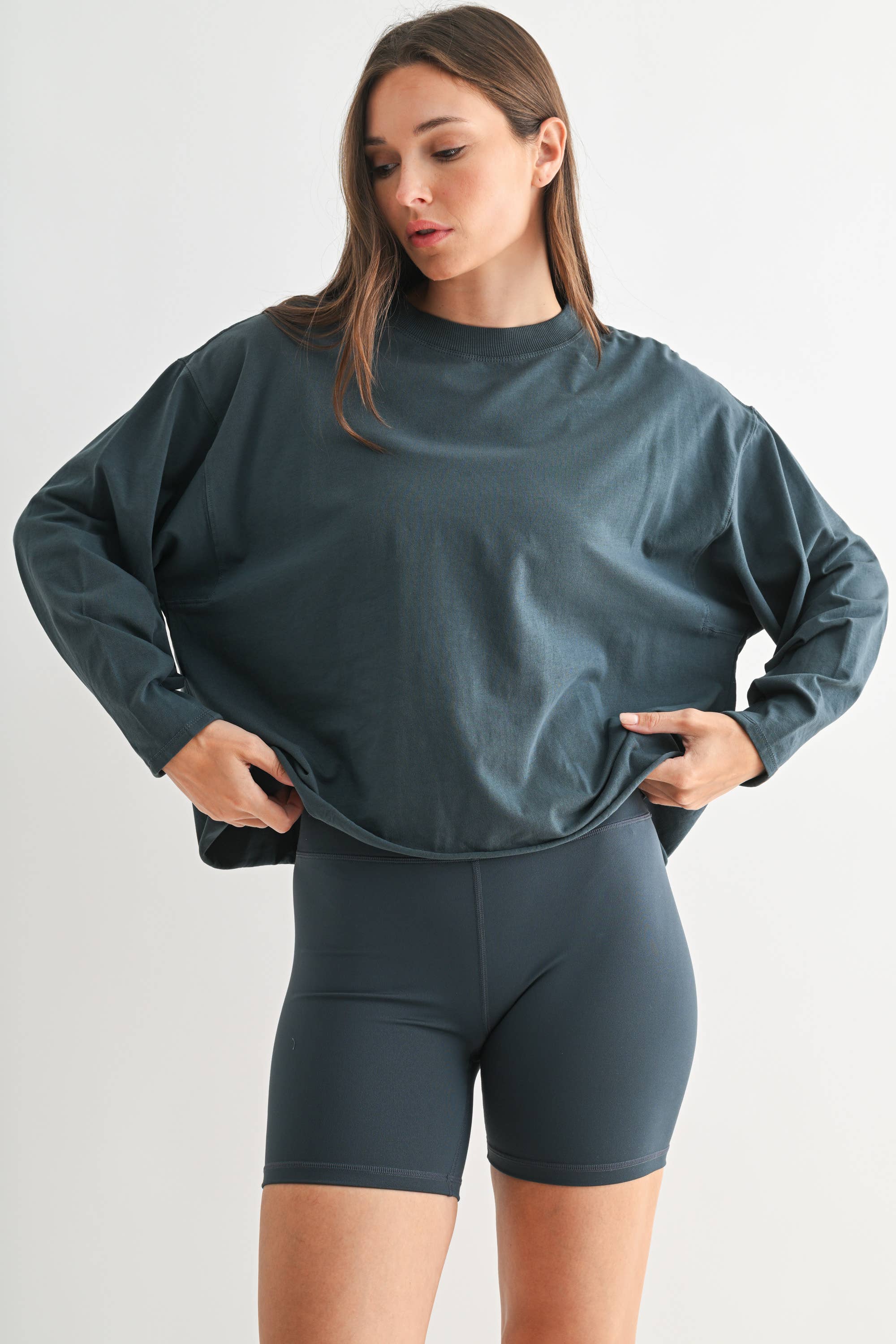 Experience effortless style with this Pima cotton mineral wash tee. Featuring a boxy, loose fit with tapered long sleeves and cuffed edges, it’s designed for relaxed comfort. The crewneck neckline and unique mineral wash finish add a subtle touch of texture and charm.
