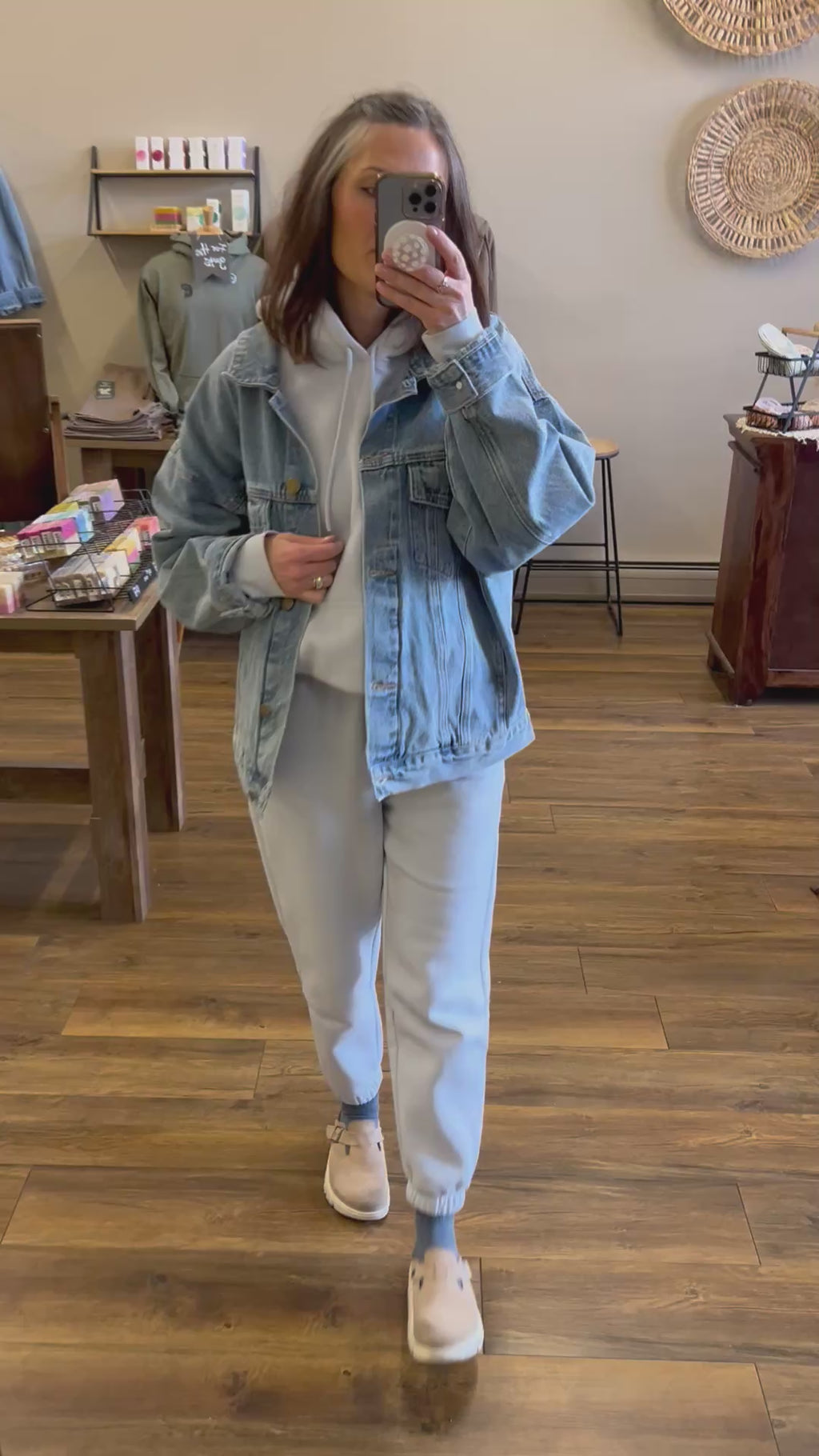 The boxy silhouette of this denim jacket gives off relaxed vibes - perfect to layer over your Mono B activewear for a casual outing. It features two breast pockets, two side pockets, and metal buttons.