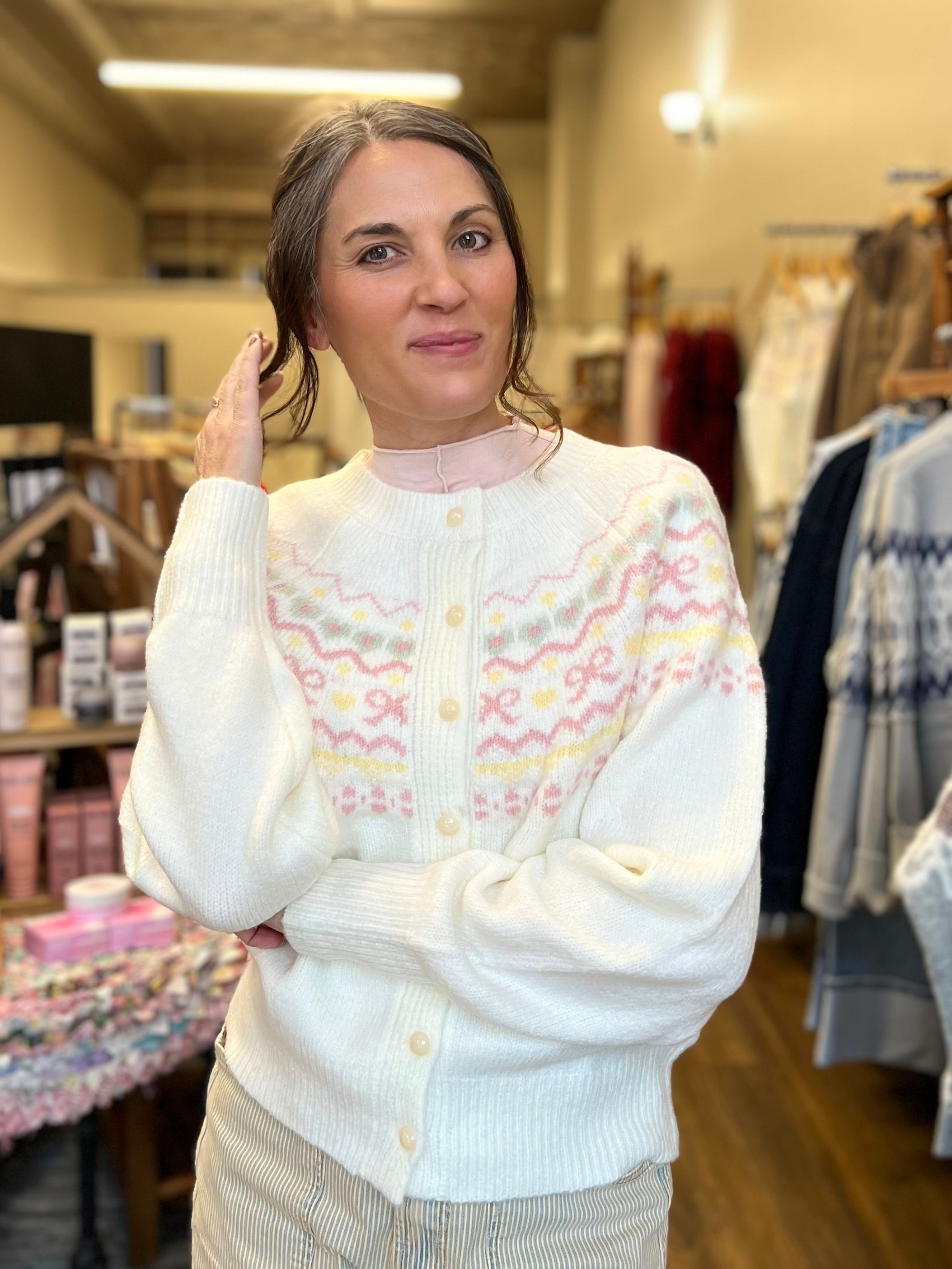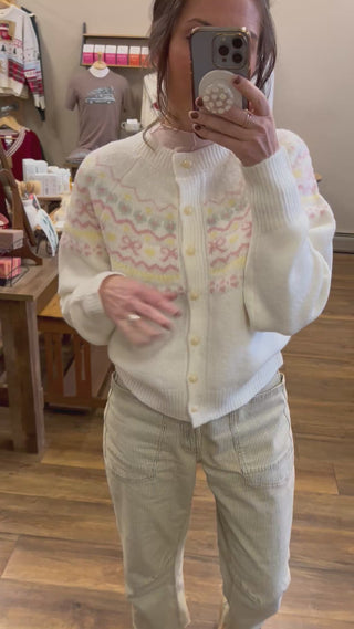 Get ready to snuggle up in style with this charming fair isle sweater cardigan. Its timeless shape guarantees a cozy fit, ideal for layering over tees or chic tops. Perfect for cool evening strolls or laid-back hangouts, this adaptable cardigan complements any look, from jeans to dress pants.