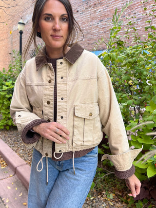 Light Taupe Mineral Wash Waffle Knit Long Sleeve Top