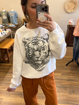 Light Taupe Mineral Wash Waffle Knit Long Sleeve Top