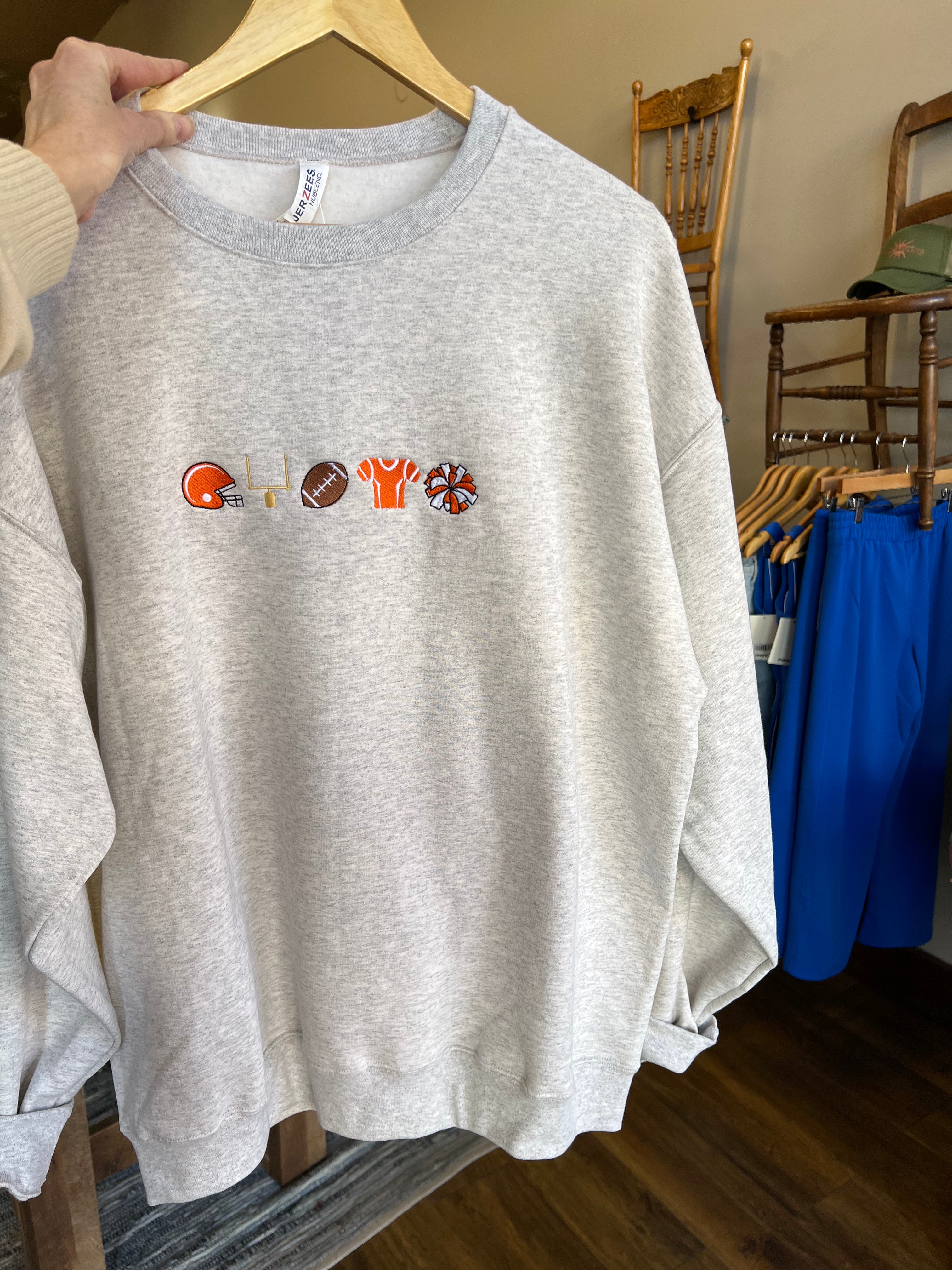 This cozy and stylish sweatshirt is the perfect way to show your school spirit during football season. Whether you're a proud football mom, part of the cheer crew, or just a fan, this sweatshirt is designed to celebrate the game in your school colors. 🏈