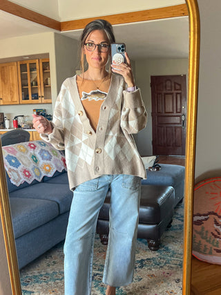 Light Taupe Mineral Wash Waffle Knit Long Sleeve Top